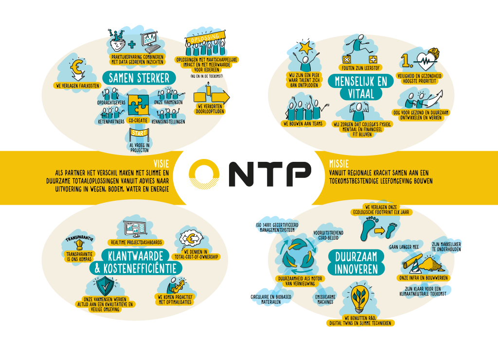 De wereld verandert in hoog tempo. Klimaatverandering, technologische innovaties en een steeds dynamischer speelveld vragen ons om wendbaar te zijn en tegelijk trouw te blijven aan onze kern. Bij NTP geloven we dat we door gedeeld leiderschap en samenwerking met collega’s, partners en klanten echt kunnen bijdragen aan een duurzame en toekomstbestendige leefomgeving.