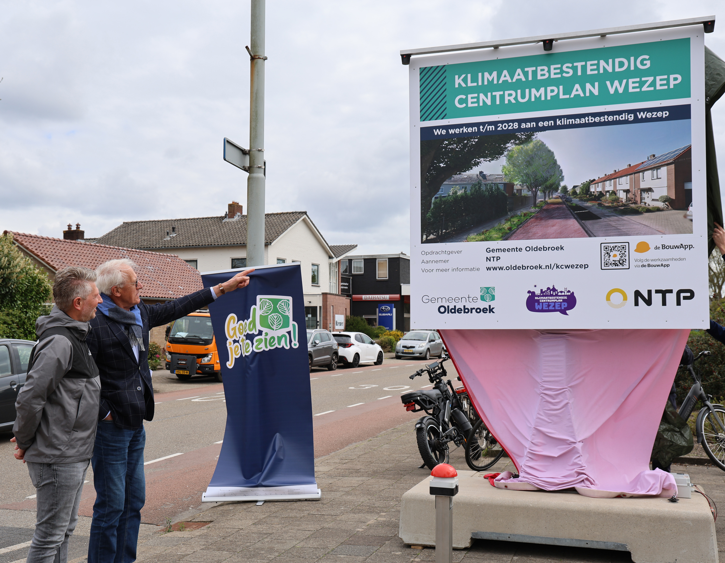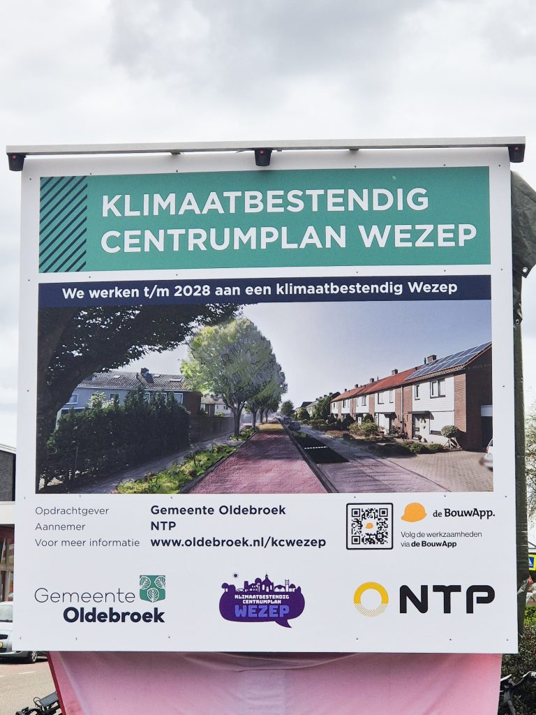 Op maandag 20 april is het startsein gegeven voor de herinrichting van het centrumplan van Wezep. Een omvangrijk project en zelfs het grootste project van de gemeente Oldebroek. Wethouder Heddema markeerde de start van dit project met de onthulling van het bouwbord. De riolering is aan vervanging toe. Dat biedt de mogelijkheid om ook de openbare ruimte opnieuw in te richten. NTP voert in opdracht van de gemeente Oldebroek deze herinrichting uit.