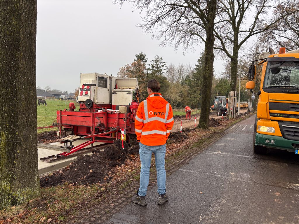 Tygo loopt momenteel mee met Alfred, uitvoerder op onze vestiging in Hattem. Samen werken zij aan een project in Hardenberg. “We zijn daar bezig met de eerste fase. Het oude fietspad is tot op de fundering gefreesd, waarna we de fundering opnieuw profileren en er een nieuw betonnen fietspad op aanbrengen. Daarnaast voeren we verschillende bakreparaties uit en hebben we de kruising en het plateau opnieuw geasfalteerd,” vertelt Tygo. Zijn werkzaamheden zijn zeer afwisselend. Naast dat hij buiten volop meters maakt en ondersteunt bij de aansturing, houdt hij zich ook bezig met administratieve en facilitaire taken, zoals het verwerken van bonnen en weekstaten. “Juist die variatie maakt het leuk. Geen dag is hetzelfde.” Wat Tygo vooral waardeert binnen NTP zijn de korte lijnen. “Ik heb veel contact met Alfred, maar ook met andere collega’s. Iedereen neemt de tijd om dingen uit te leggen en wil je echt iets leren.” Hij leert dan ook dagelijks nieuwe dingen.